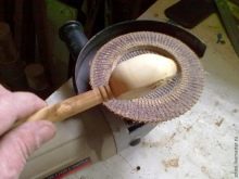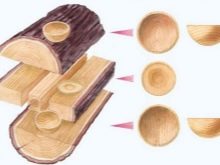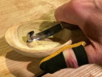 For the selection of the bowl, you still need a regular chisel or, alternatively, a mallet. They first cut down the rough contour, then it is corrected by small semicircular chisels. The bottom is aligned rasp burrs.