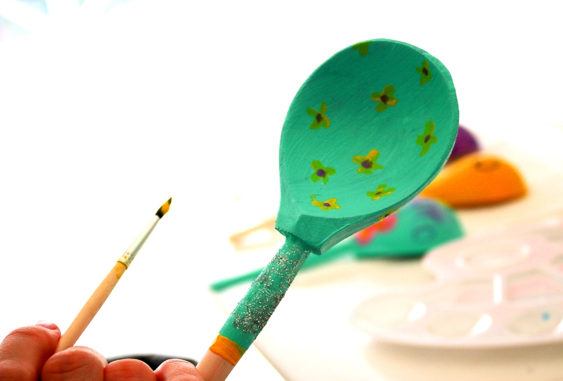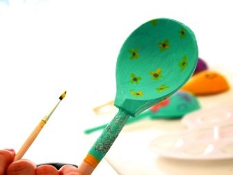 The most common option for decorative processing spoons - painting. Even young children in the garden are taught how to paint a paper spoon template, or give them to cut a paper blank to simulate carving. If the spoon is purely decorative, and contact with moisture does not threaten it, for painting can use tempera or colored gouache. Such paints are easy to use, they do not require pre-priming of the surface.