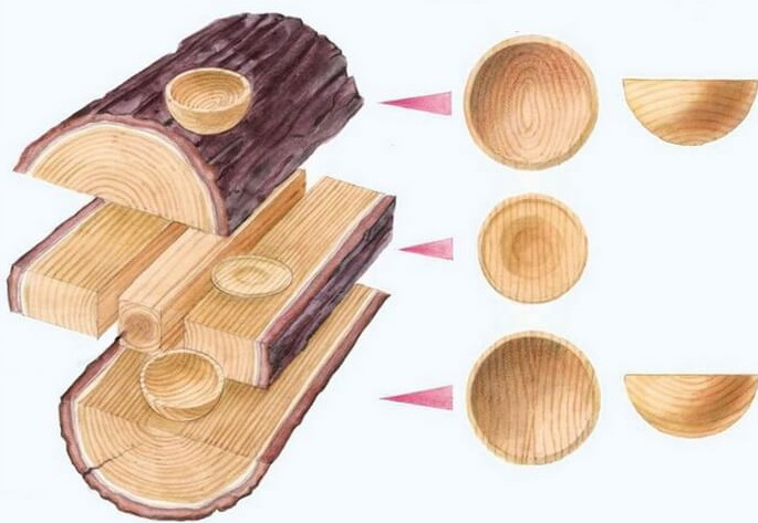 The beginner master is not concerned about the scale of the production of wooden utensils, but the material that is better suited for this purpose. So that the process was not a failure initially, you will need blanks of hard, but not chopped wood - aspen, maple, ash, cherry, birch, walnut. If you have not previously tried to work with a tree, take a lime. It is soft and light wood, supple even in the most skilled hands. In addition, linden does not emit tannins, products from it are not inclined to warp.