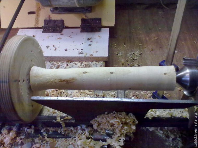 Using the template, transfer the two types of drawing (top and side) to a wooden blank. Watch the orientation of wood fibers - it should be longitudinal. Fix the workpiece clamp, begin to form a rough bowl. Further step by step actions such.