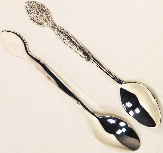 - Melchior - this spoon with its attractive appearance is quite capable of competing with silver. Over time, the metal darkens, while it is almost impossible to return it to its original form.