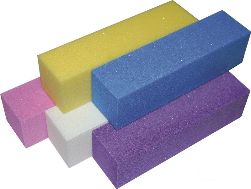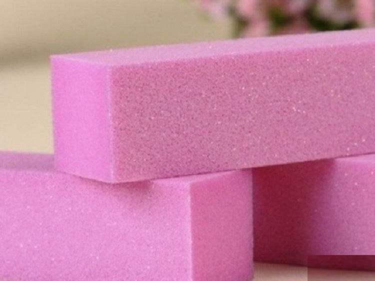 - PE foam. The most popular option, equally successfully applied by both specialists in salons and non-professionals at home. First of all, this is due to wear resistance and the democratic cost of tools made from this material.Another obvious advantage of polyethylene foam buffs is the ease of maintenance and the possibility of regular disinfection, which does not damage the instrument.