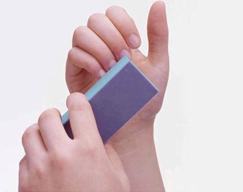 The first feature that allows you to distinguish the buff from the usual file is its shape. Most often it looks like an elongated bar (parallelepiped) with a large area of working surfaces. The materials from which such devices are made deserve attention too: due to their properties, they gently act on the nail plates, and therefore are successfully used to solve the most delicate tasks.