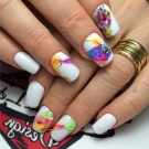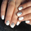 Often girls have a monochromatic white manicure, but even more often you can find nail design with white lacquer, which is complemented with various colors, patterns, symbols, rhinestones, sparkles and many others.