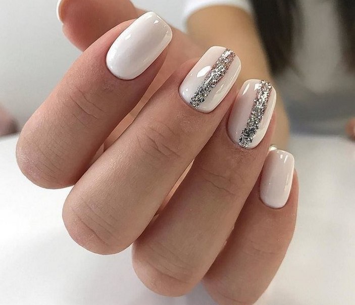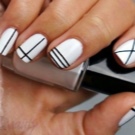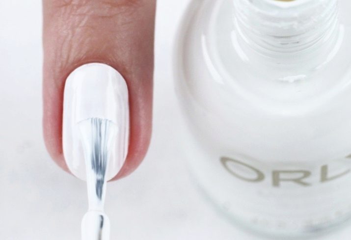 - White color is the lightest tone, and therefore you need to understand that if the nail plate is not even, white lacquer will emphasize this, which will significantly reduce the tidiness and beauty of the manicure. To avoid this, nails should be sanded before applying lacquer, and for best results, apply a clear lacquer, the so-called base, for a more even application of lacquer.