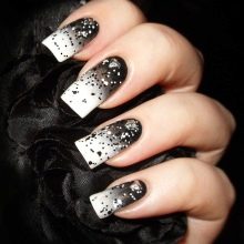 If we talk about the classics, then we can safely say that white in combination with black is a win-win option for both everyday and for exit manicure. These two most popular colors together form a stunning tandem that will suit any fashionistas. Do not think that white and black - boring colors. There are a huge number of options for white and black manicure, the design of which causes true delight. Here are some examples of great craftsmen’s ideas.