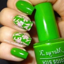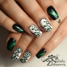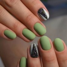 This tone wins, among others, with its stylistics, which is perfect for both summer and winter season. This color will appeal to all fashionable women who like to experiment with bright colors. And green lacquer is unique in that it has many pleasant shades, such as emerald, malachite, herbal, watermelon, menthol, marble, azure sea or bottle matte. The combination of such colors with white will be a beautiful design manicure.