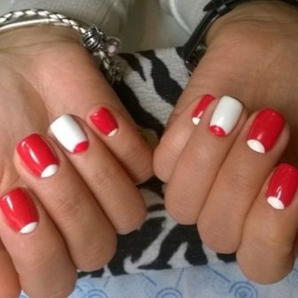 It is worth noting that the most common combination of white varnish with black or red. These three colors are considered the most popular when creating beautiful designs. But there are many interesting variants of manicure and with other colors, for example, green and yellow, purple and lilac.