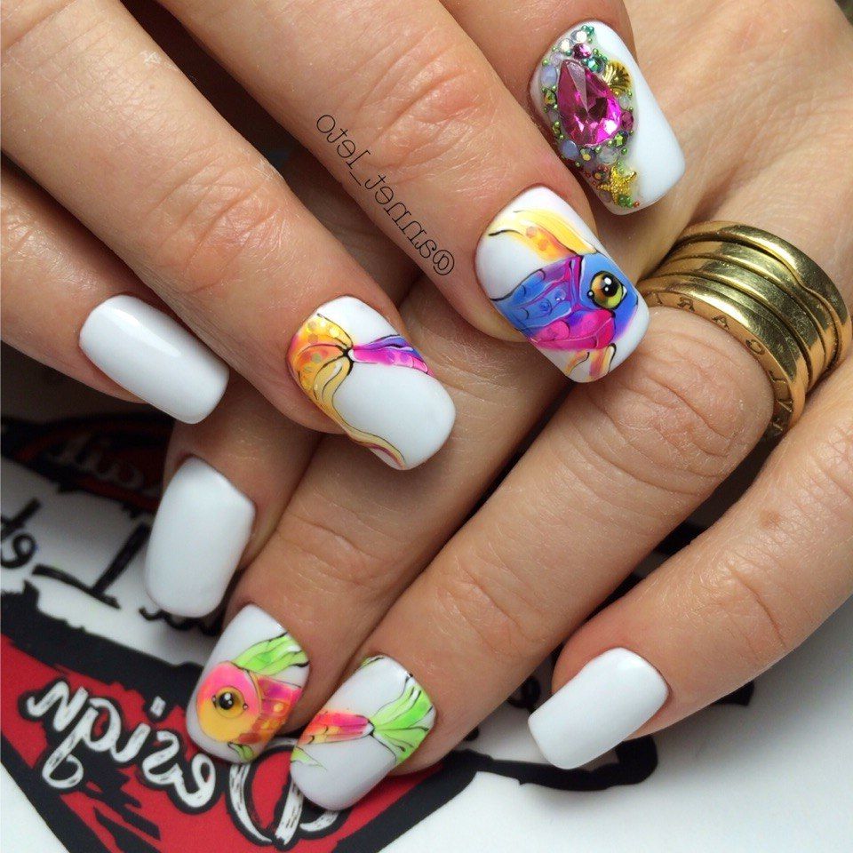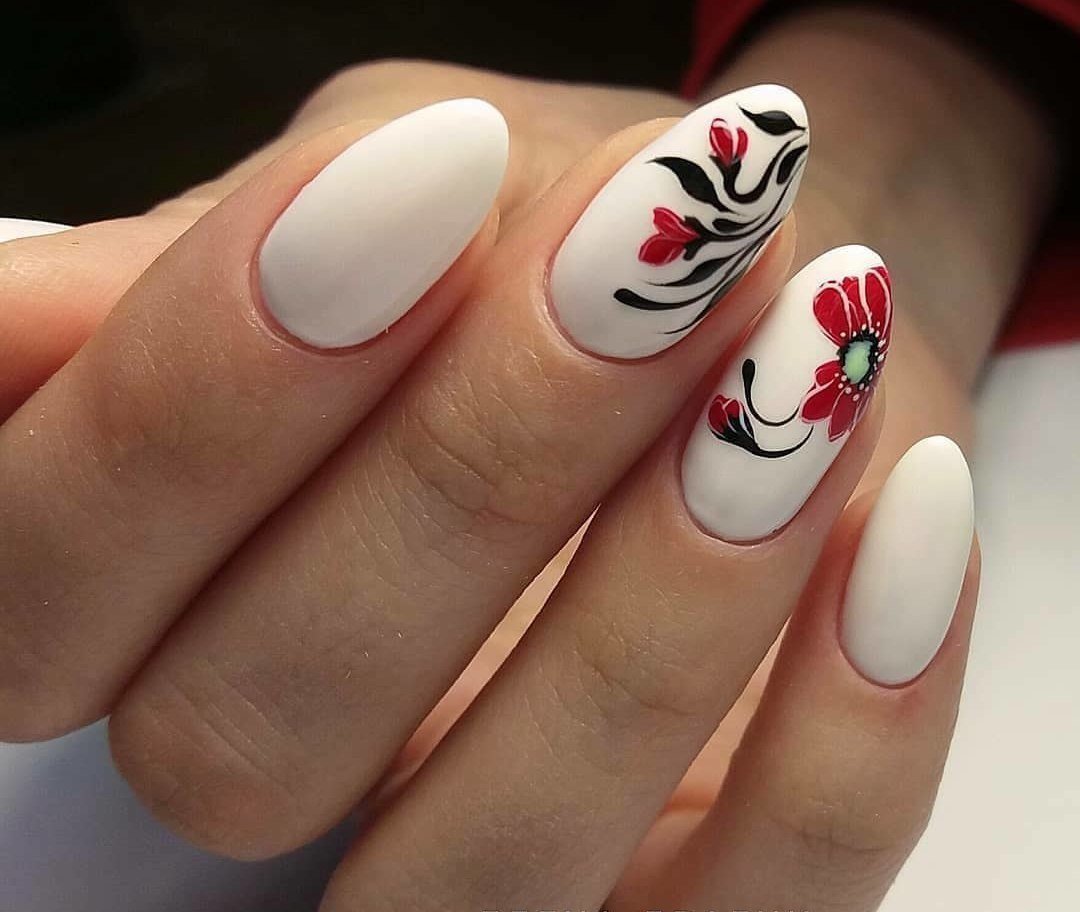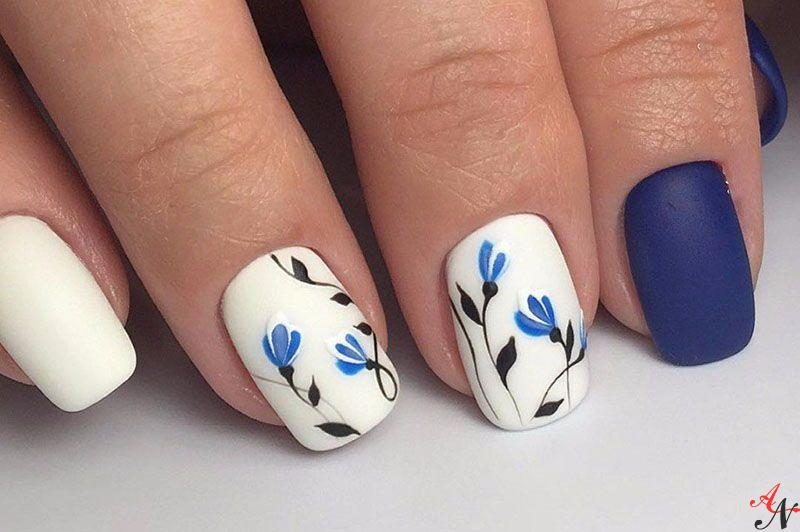 The choice in terms of drawings and patterns is really great, given that the design will be made on a white background, to which almost any color will do. It can be a color not only of additional varnish when dyeing nails, but also a shade of various drawings, stickers and rhinestones.