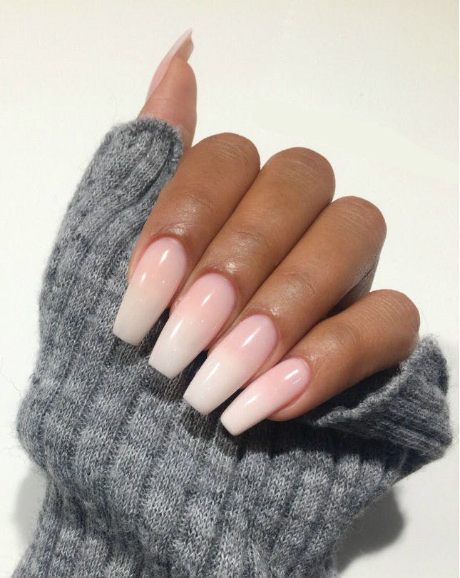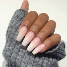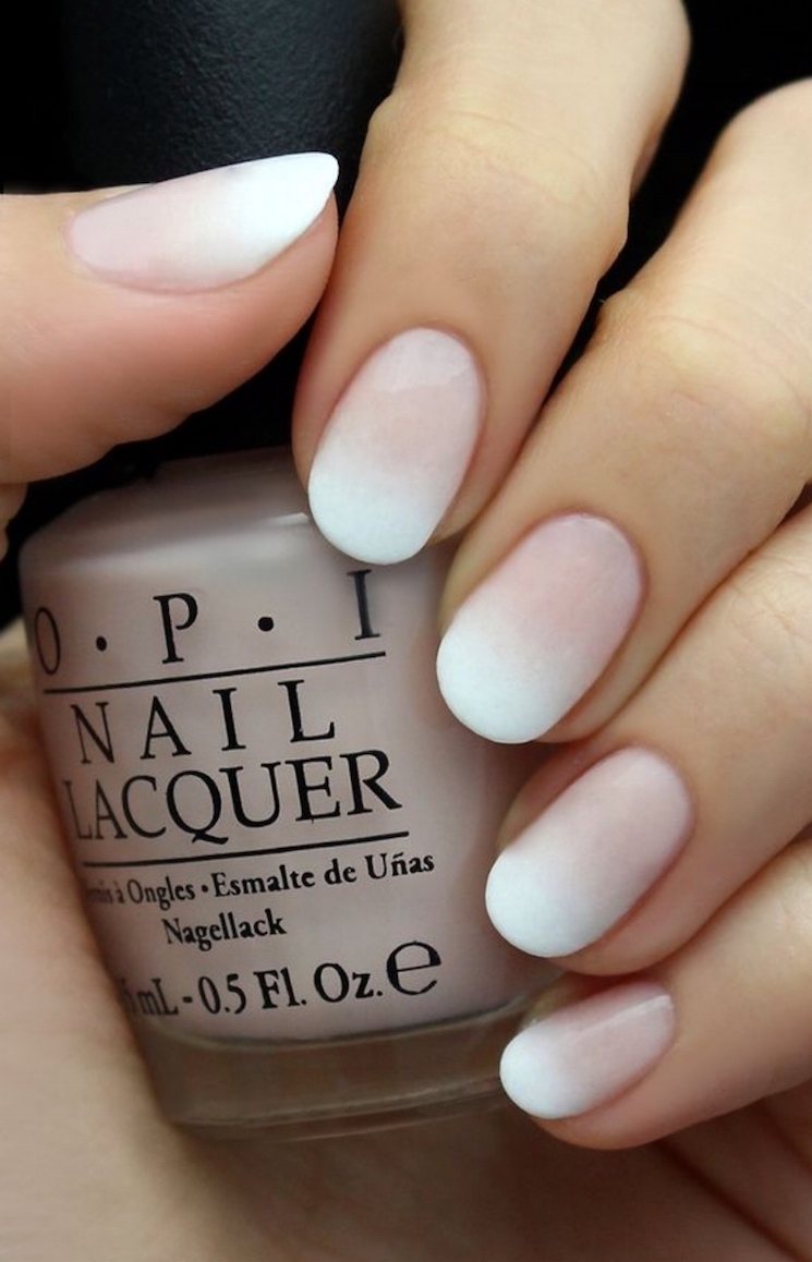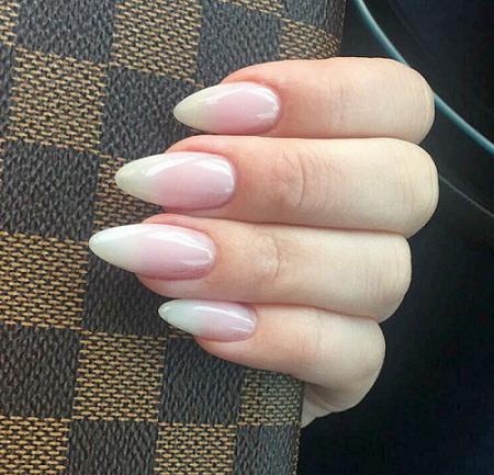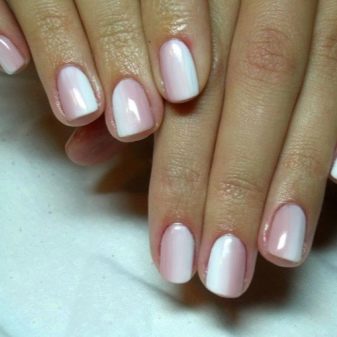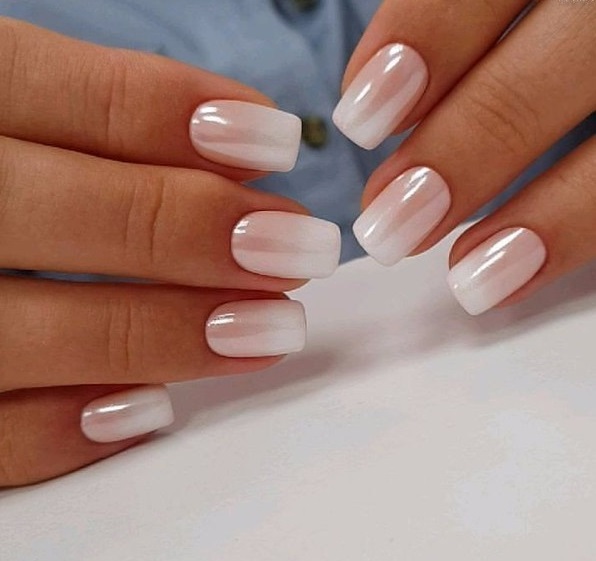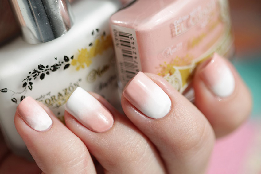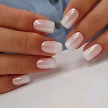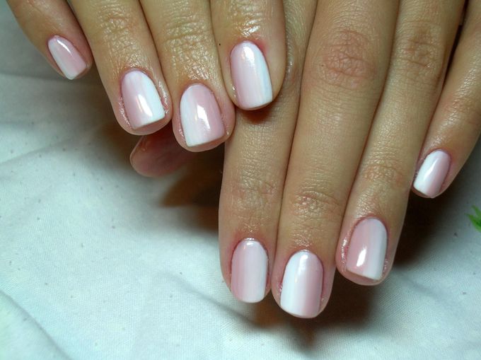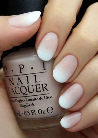 White ombre is very similar in tone to the usual French manicure, and the color range used to create it is the same varnishes.