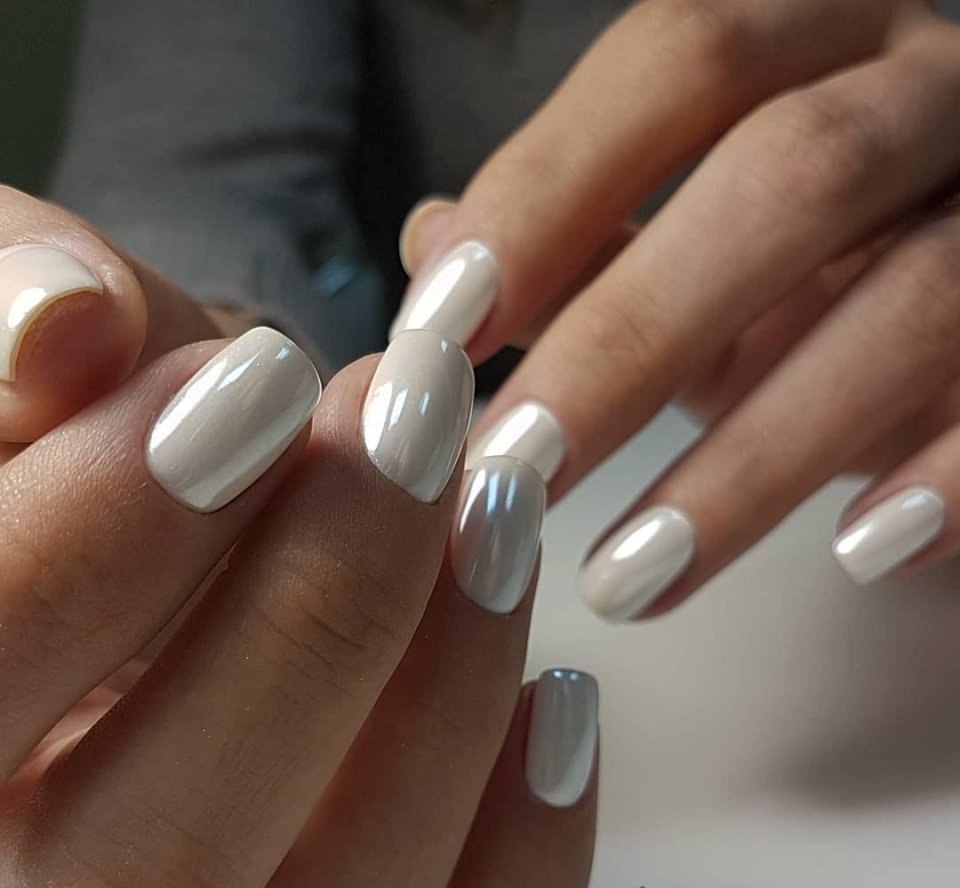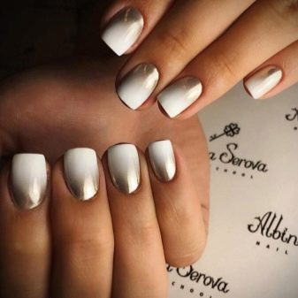 However, if you wish, you can dilute the white color with pastel shades of pink, blue and beige. As a rule, colored lacquer is applied to the lower part of the nail, and the tip is painted white.