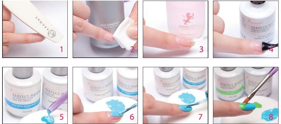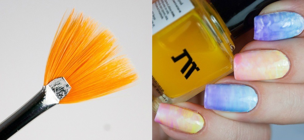 Since the lacquer is absorbed into the sponge quickly, for each subsequent nail mixing must be repeated. After completing the staining on both hands, the varnish should dry. When strong irregularities occur, they are corrected by feathering with a brush.