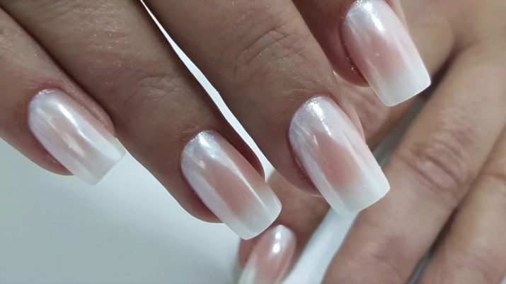 The most versatile is considered to be the white gradient, which will perfectly fit into any image. To create it requires a varnish, as well as a basic set of conventional tools for manicure, because the surface must first be carefully prepared for the coating.