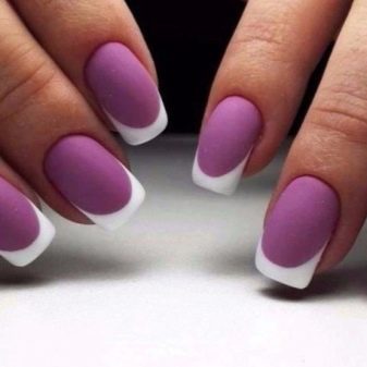With a purple base, French manicure loses its simplicity and inconspicuousness.as this color even in the brightest version remains very noticeable. However, it turns out very original. In addition, the white stripe gives a tangible color contrast, adding to the nail design spectacularity.