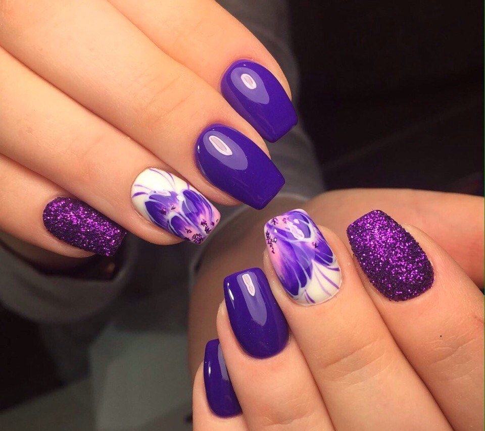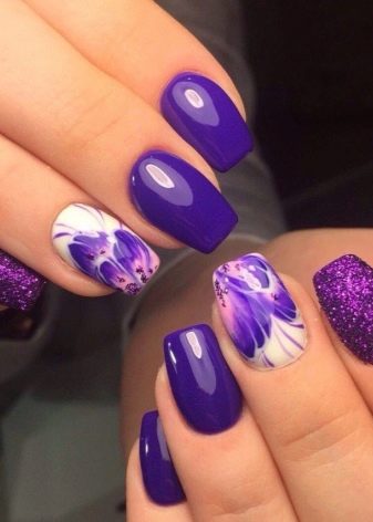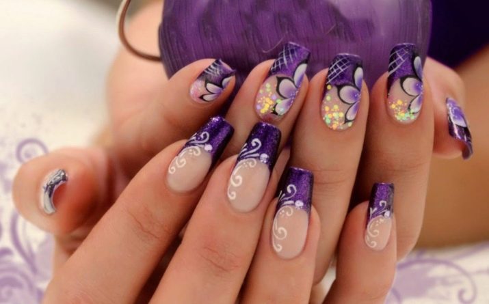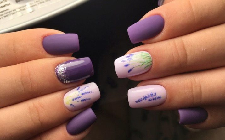 You can also make drawings in the form of white flowers on a purple background or, conversely, purple flowers on a white background. The last option, of course, easier to implement. And it is enough to buy appropriate stickers on the nails - they will significantly save time and simplify the process if you do the manicure yourself.