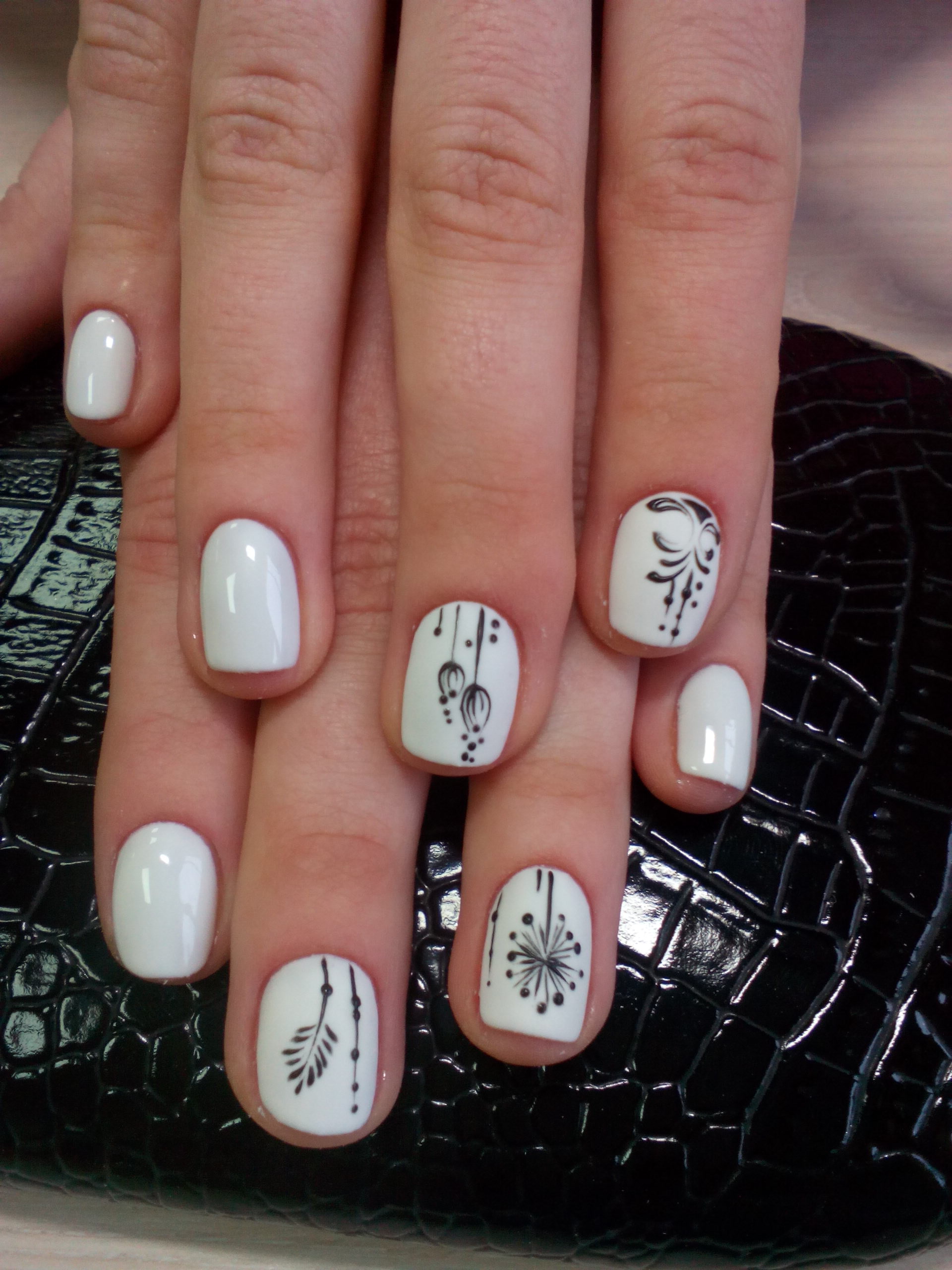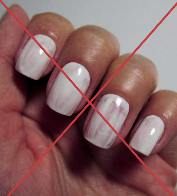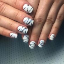 - The main disadvantage of white varnish on short nails is its relative fragility. Of course, this refers to the standard coating, and not shellac. Any fixer will not extend the life of a simple white manicure for a long enough period. It will have to be changed every 3-4 days, and even more often. The white varnish will soon be covered with cracks and chips. That is why experienced craftsmen advise to decorate the nails with white shellac, and when using simple compositions it is better to give preference to a different color.