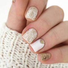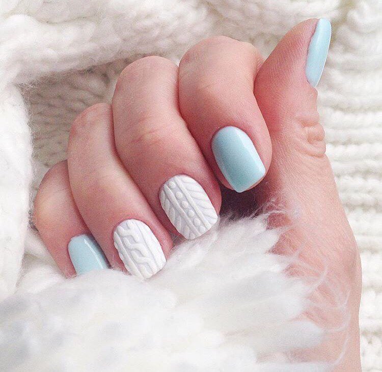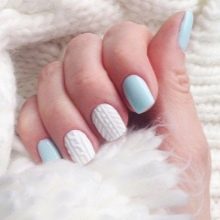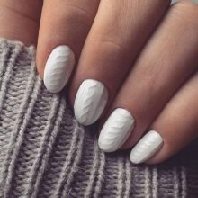 - Knitted. This design is original and unusual. It looks interesting and fashionable, but it is desirable to resort to it only during the cold seasons. The most advantageous knitted manicure looks in classic white color. From him comes the warmth and comfort.