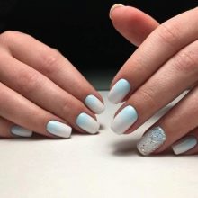 - blue-white - harmonious, discreet manicure, which can be embodied in many different ways: by making strips, applying charming drawings or in the form of a moon design;