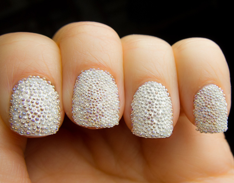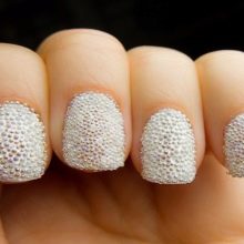 - With broths. Otherwise, this original manicure is called caviar. This name is due to the fact that the broths are different sized beads, which are very similar to small eggs. Broths can fill the entire surface of the nail plate, or only part of it. With the help of such inclusions you can create unusual and spectacular ornaments.