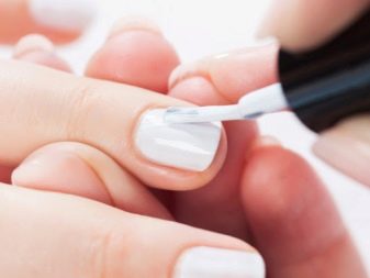 - Covering with a shimmering lacquer will make it possible to hide an unevenly lying white polish on the nails.