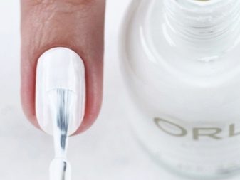 - Before applying white lacquer, it is better to properly prepare the nail plate: sand to a flat surface and degrease.