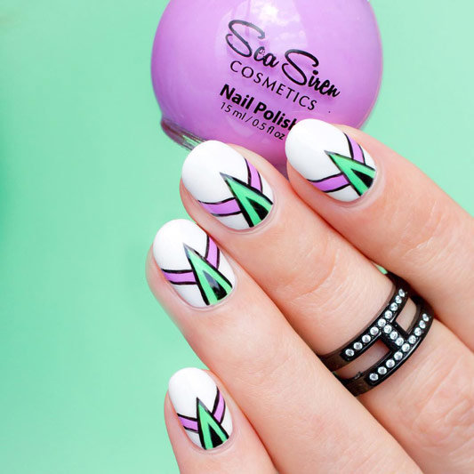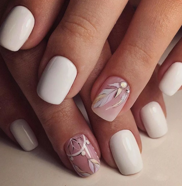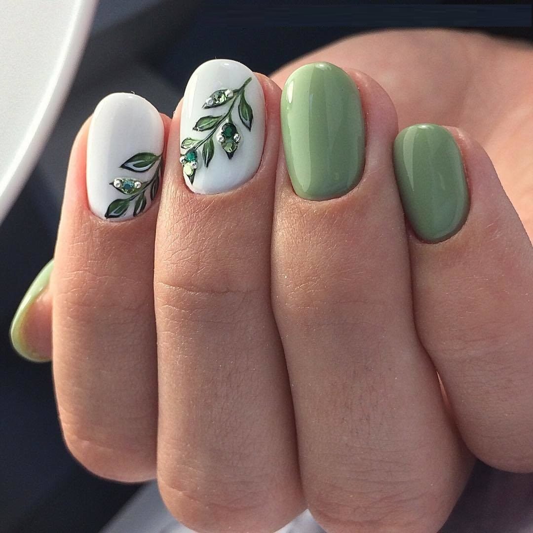 - white-green - white manicure can be diluted with different shades of green, for example, with a trendy mint color (all nails can be painted white, but only one of them can be distinguished for mint varnish or a gradient)