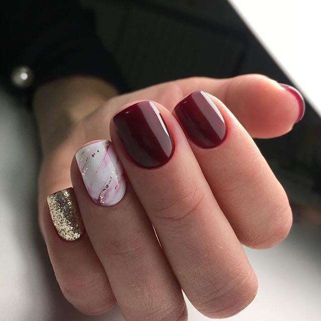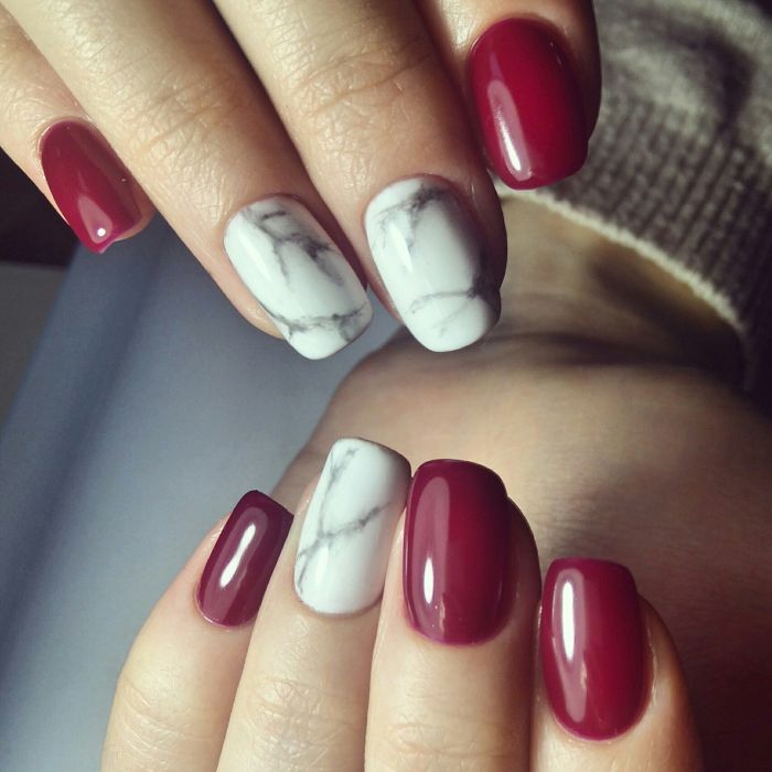 - white-burgundy - feminine and noble manicure, which can be both glossy and matte (looks impressive with additional decorations: pebbles or stickers).