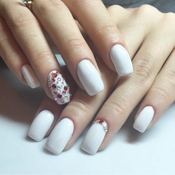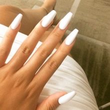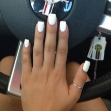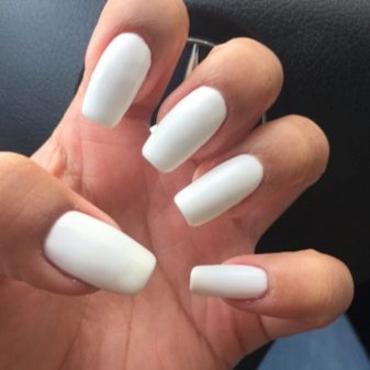 White color is demanding on the shape of nails, because it can create a shortening and expansion effect. For this reason, it is undesirable to use it for short nails, as well as flattened. With a lack of length and roundness of the natural nail, it will further modify the plate for the worse.