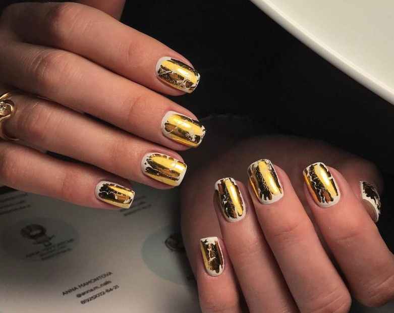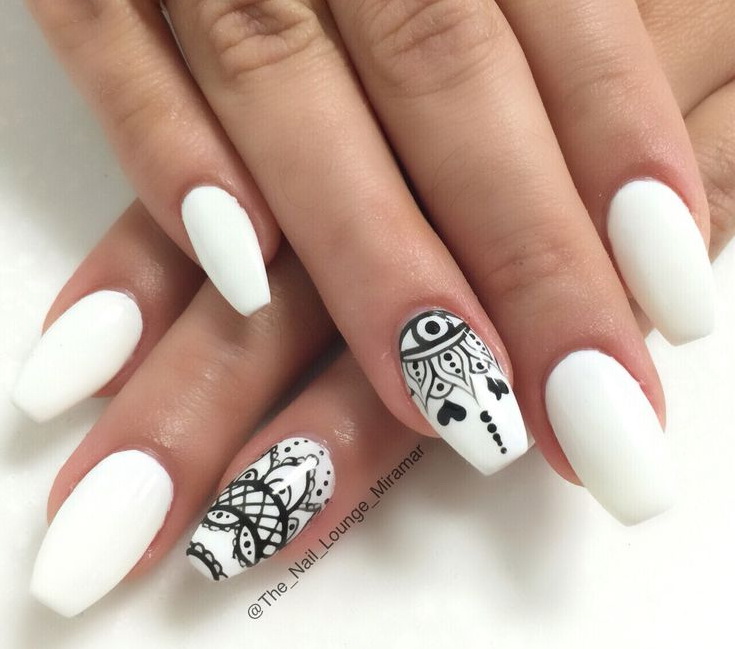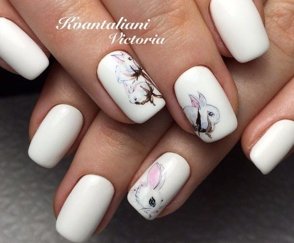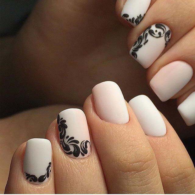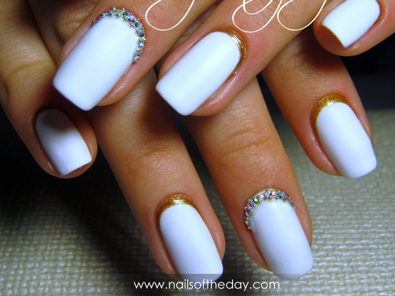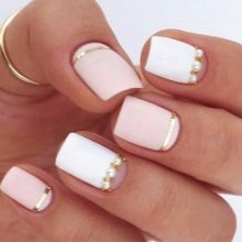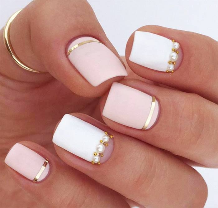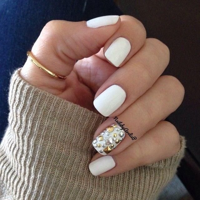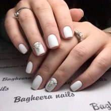 You can decorate white nails with a matte base with different decorative elements.