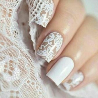And if you decorate your nails with lace, which is especially fashionable today, such a design will be able to decorate the image of the bride.