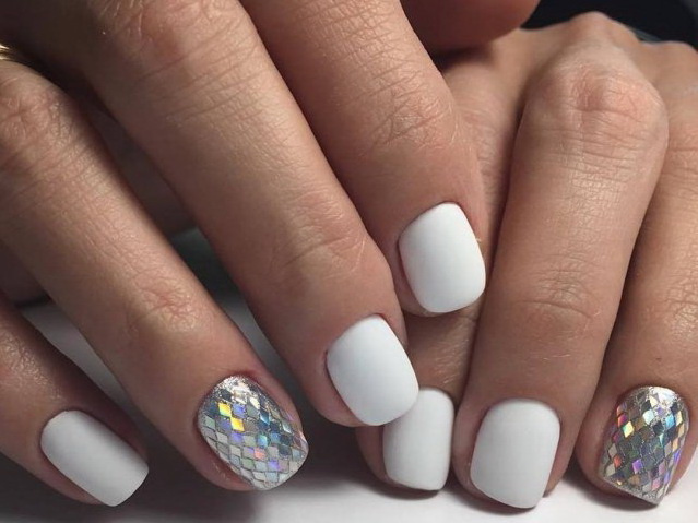 Do not paint all the nails completely. This will allow to add something special to the design, because the combination of different techniques is today considered one of the best ways to get the perfect design. For accents, you can leave two nails on each hand, or even create design options in different techniques, making sure that the role of a dominant in them is assigned to a white matte varnish.