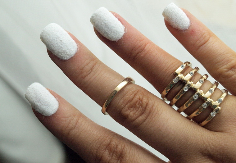 If there is no matte varnish at home, you can do it yourself. To do this, you can cover glossy nails with a finish layer with a matted effect. When drying in a special manicure device, the coating will become dull at the moment. If there is no finish, you can use special powders to help recreate the velvety or even felt effect.