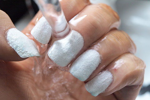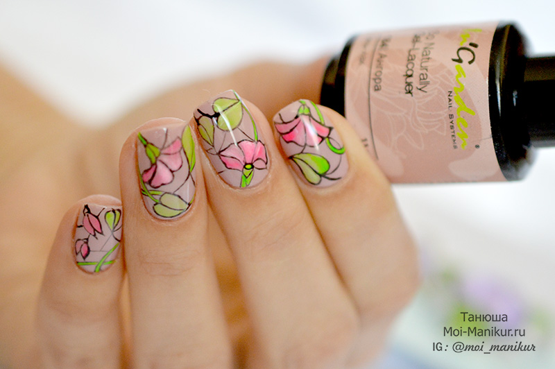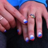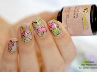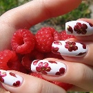 On the nails, covered with the most ordinary varnish in two layers, it is very easy to glue the sliders. They are applied to the dried surface with tweezers or using a stick with an adhesive side. For fixing the picture is pressed with a cotton swab, eliminating bumps and air bubbles. To keep the slider for a long time, a transparent lacquer fixer is placed on top.