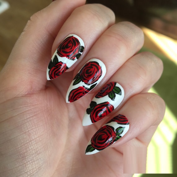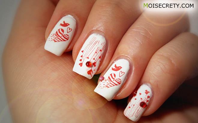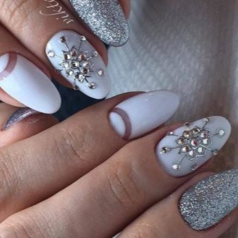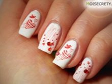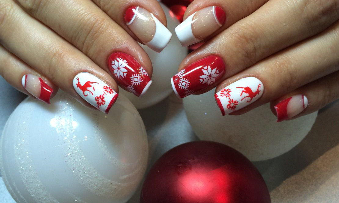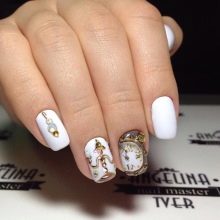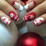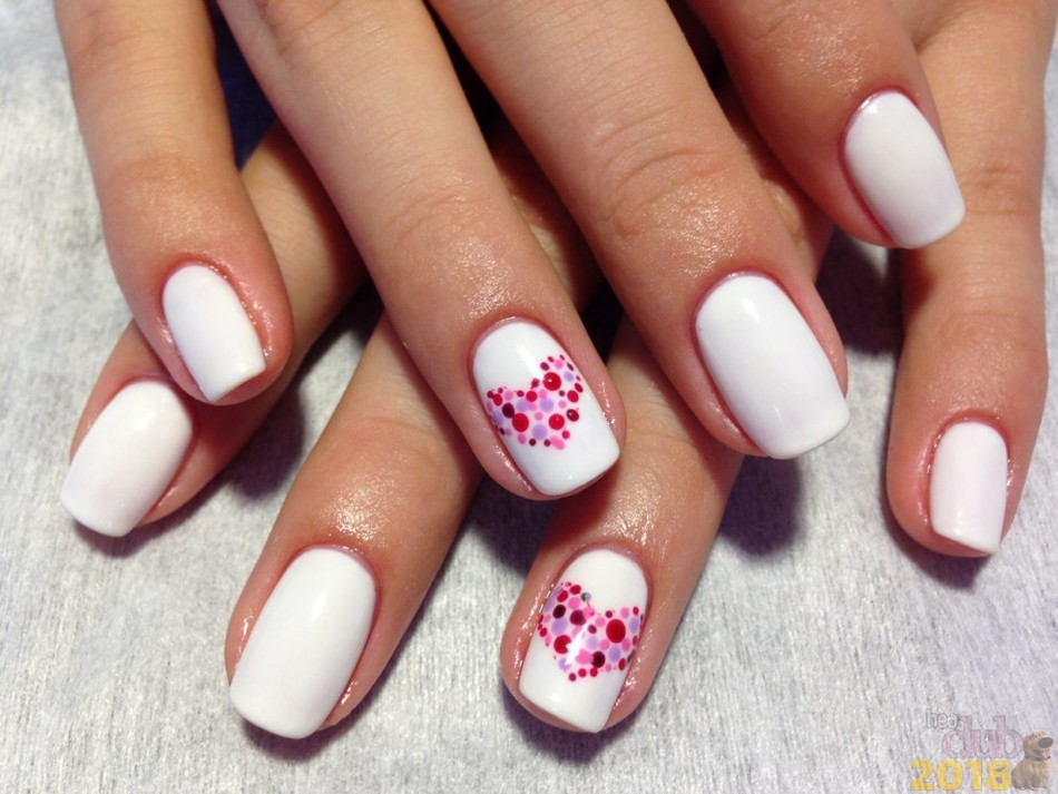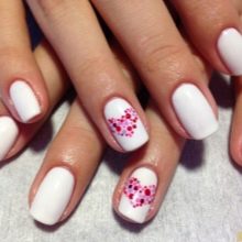 Various drawings on a white surface look spectacular. It has become a tradition to decorate nails for the holidays.Bright Christmas decorations on a white background paint for the New Year, hearts for Valentine's Day, St. George's Ribbon for May 9, the Russian flag for June 12. The picture is placed on all the nails or accentuate people's attention, placing the picture on one and sometimes two fingers of each hand.
