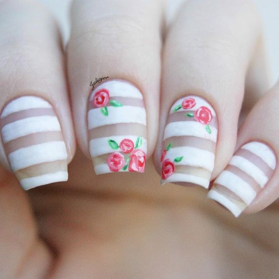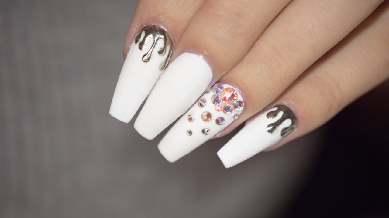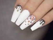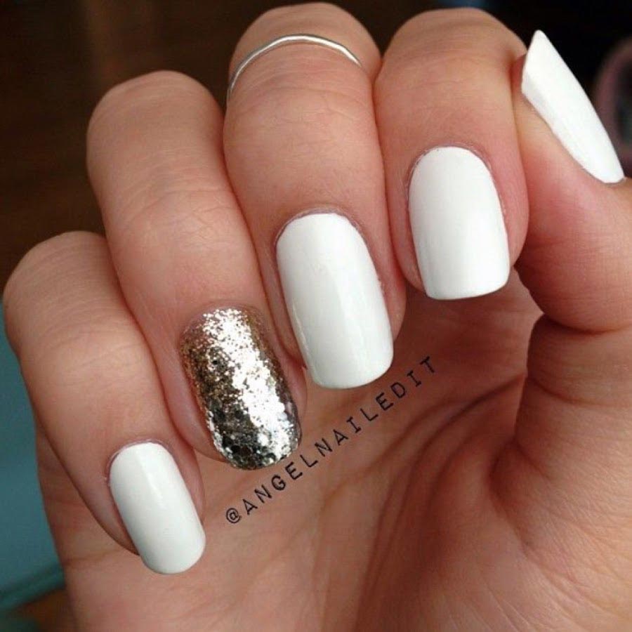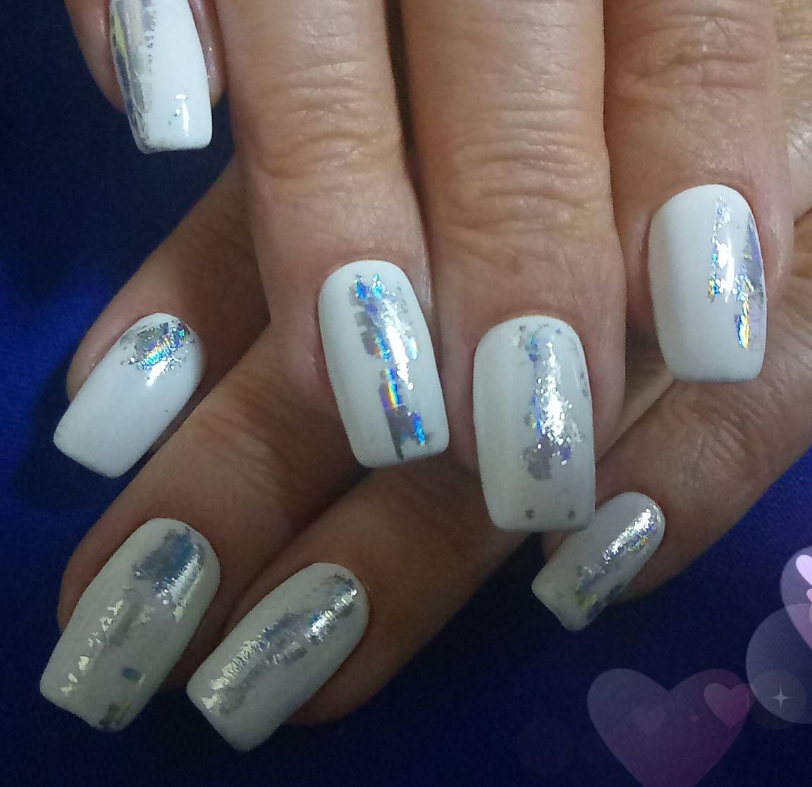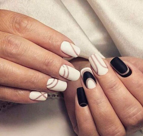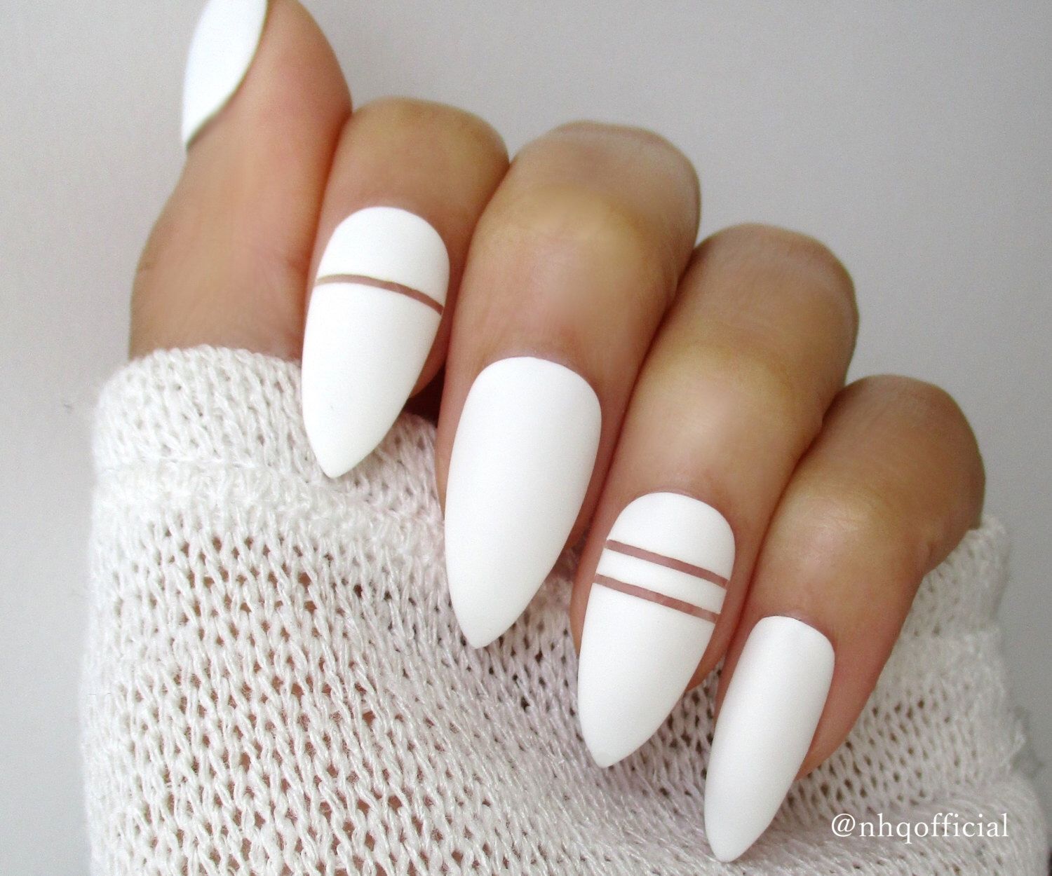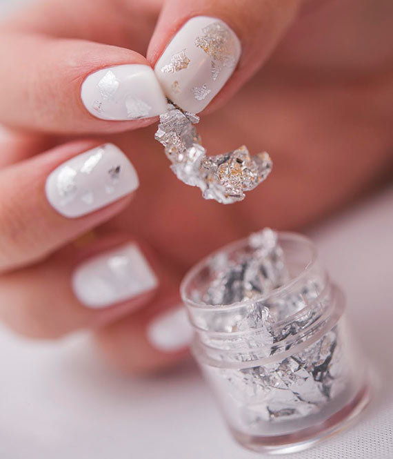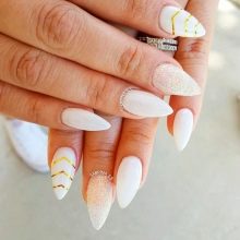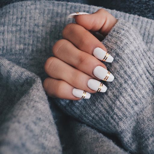 Matte white color goes well with sparkles, golden and silver stripes. Surrounding people are always impressed by the matte surface with glossy shimmering inclusions.