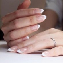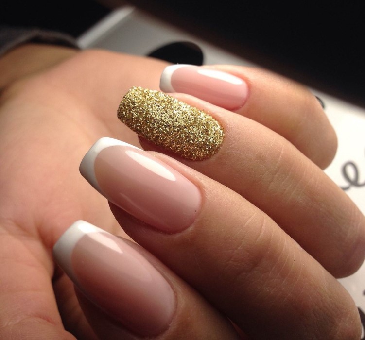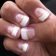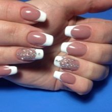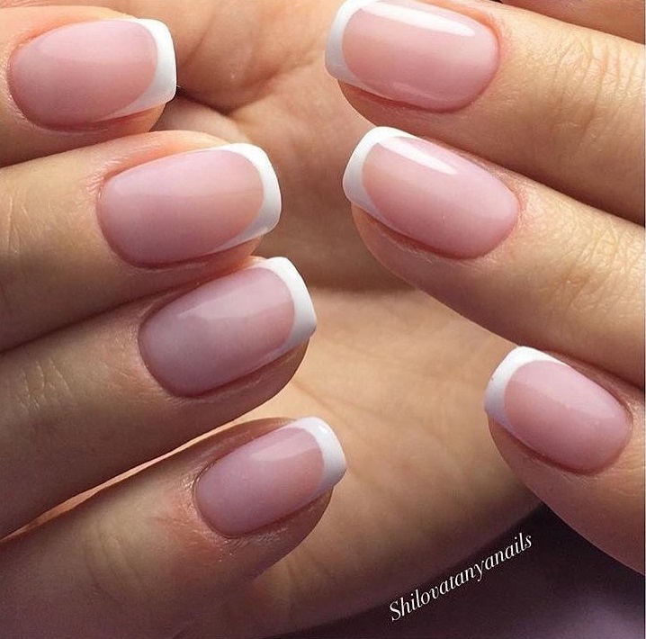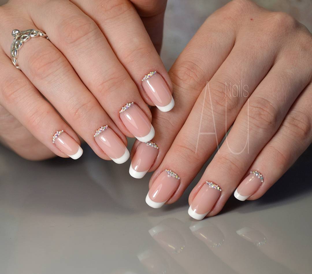 Classic manicure is suitable for any length of nails. Ladies of all ages can decorate their nails with a classic design for absolutely any event. In this regard, French manicure is universal. You can decorate it with rhinestones, stickers, patterns, powder, sparkles. The picture of any color looks great on a white background.