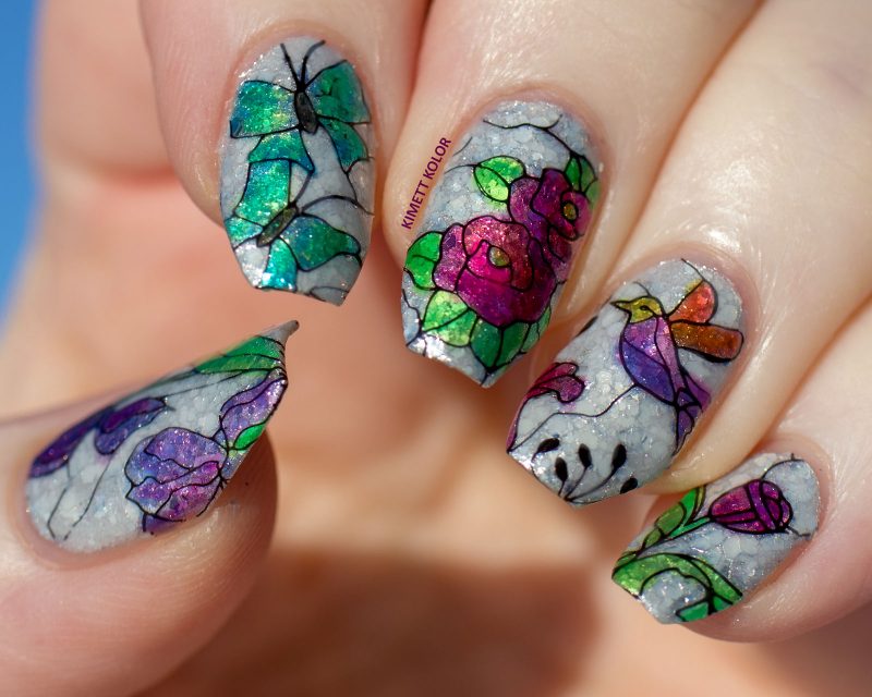 The design, made with colored translucent stained-glass gel, is unusually in demand this season.The most trendy is the image of a large burgundy bud, covered with lilac or scarlet stained glass transparent varnish.