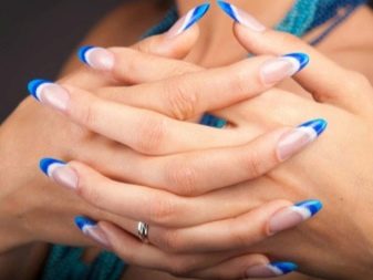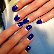 The only drawback of the blue-white manicure is the need to have carefully groomed nails, because the blue color will quickly identify all the flaws.