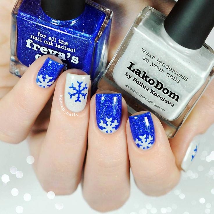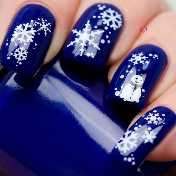 Dark blue sky, white stars, blackening forest in the distance: if the nail plate allows, then a skilled craftsman can paint any landscape on the nail. White month or northern lights will look great on a black and blue sky. Performing a winter pattern, white and blue tones usually become basic. You can draw blue snowflakes on a snow-white background. More cheerful drawing - white smiling snowman on a gray covering.