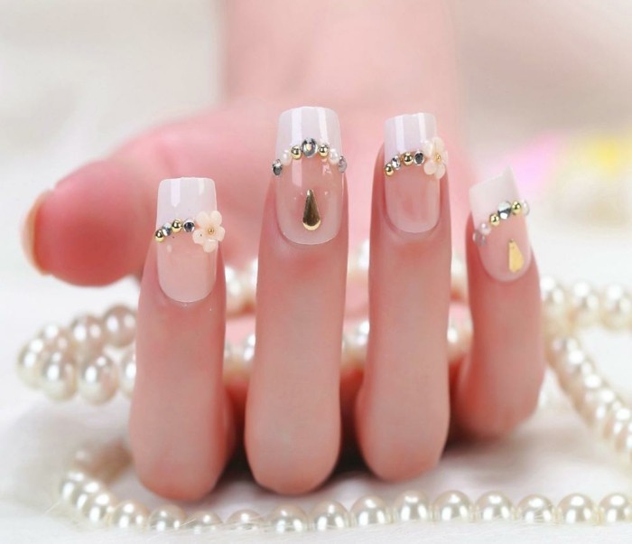 White color represents peace, goodness, tranquility and purity. Girls put it on their nails at special moments of their lives. Manicure with rhinestones is ideal for special occasions and everyday life. The most popular design for a wedding combines white lacquer and rhinestones.