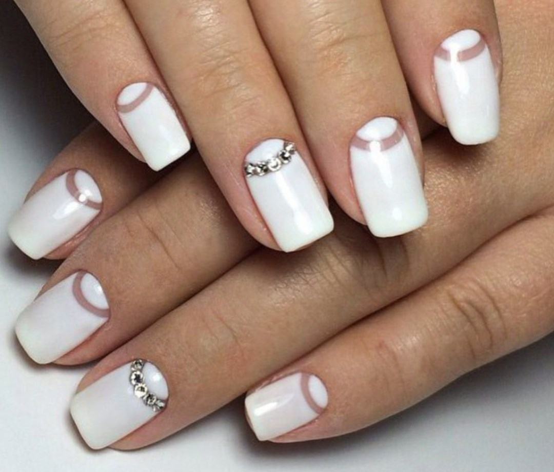 White manicure with beautiful nails is relevant in any season. Silver-tone rhinestones are ideal for winter design, rainbow rhinestones - for summer. It is worth paying attention to the following secrets of a good manicure: