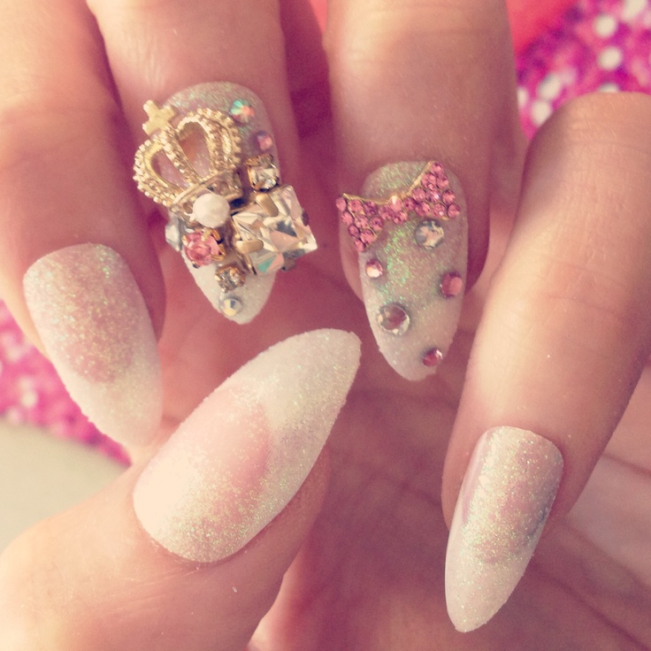 - Crown. On long nails can be laid out with rhinestones the whole contour of the diadem or crown. In another case, draw the picture with a brush and glue the stones on top.