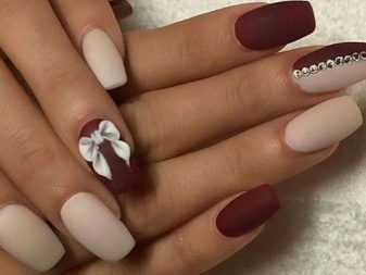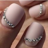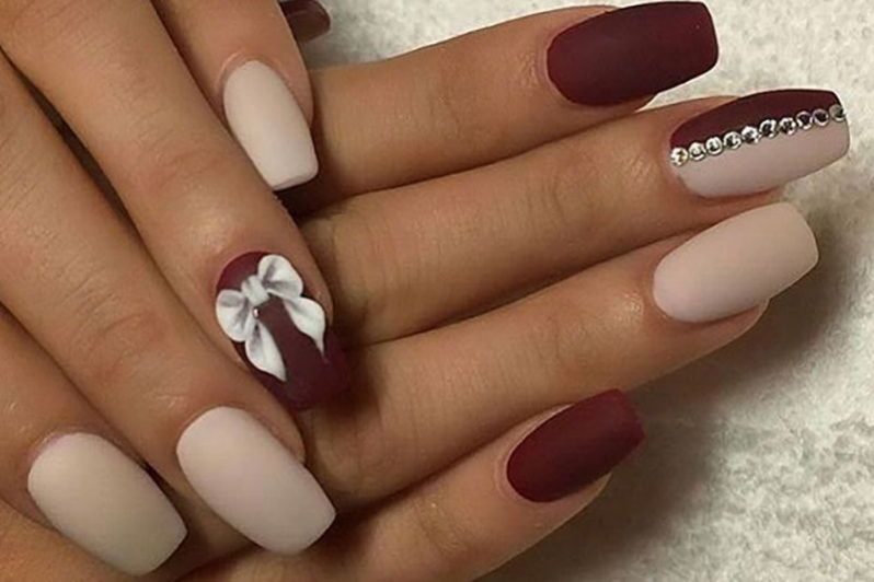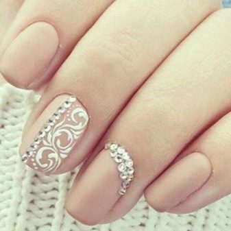 - Manicure with rhinestones in contrast beige and marsalovyh tones.