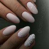 With the advent of autumn, complex paints come into fashion. However, at this time, you can emphasize the beauty of female hands, choosing beige tones with an admixture of orange, gray, golden subton. To make the choice more harmonious, you can make a start from the type of coatings: for winter, these are options that look good with your coat, sweater, and knitted blouse. Winter is a time of restrained tones, you need to remember this.