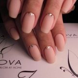 Matted varieties of suede, velvet and satin look great on such nails.as well as mirror gel polishes. However, when choosing a beige color, you need to take into account the fact that the bright and bright beige colors will visually expand and shorten the nail plates. As for long nails, in this case, the choice of tone, as well as the texture of beige pigment, must be approached very carefully. The fact is that the greater the length, the greater the requirements. All that would be appropriate for nails of moderate length and short, on such nails may seem vulgar and unforgivable. Here it is better to opt for light shades of beige, because they allow you to add status and refinement to the design.