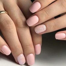 The length of the nails also affects the choice of the best shade of the beige coating. Dusky varnish looks better on short nail plates, visually creating the effect of lengthening, which makes fingers more elegant. If the nails are long, light beige will be the best choice for a premium manicure. On the average oval length, which today is considered the best shape, the bright beige tones look great. To emphasize the beauty of the design, you can choose coatings with the effect of holography, sand, textiles, lacquer products with magnetic, temperature, glossy and matte type of pigment.