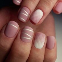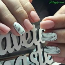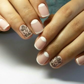 In addition to it, the base for manicure in beige tones will be french (traditional and reverse), as well as lunar design, broken glass, gradient.