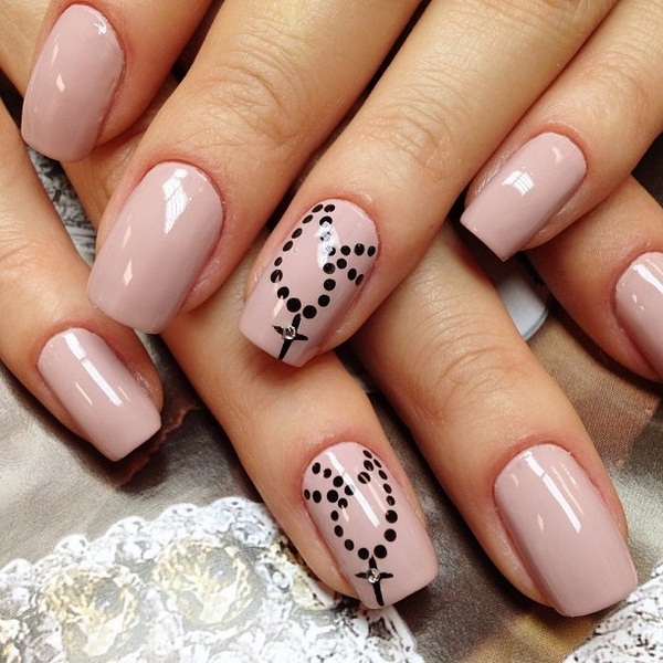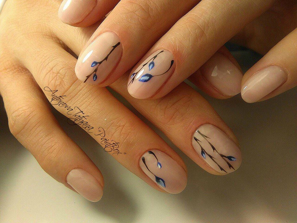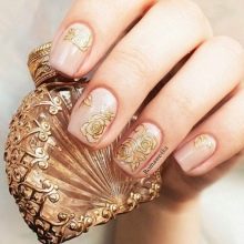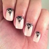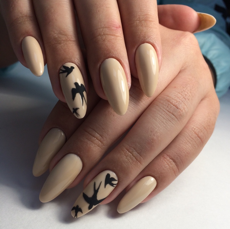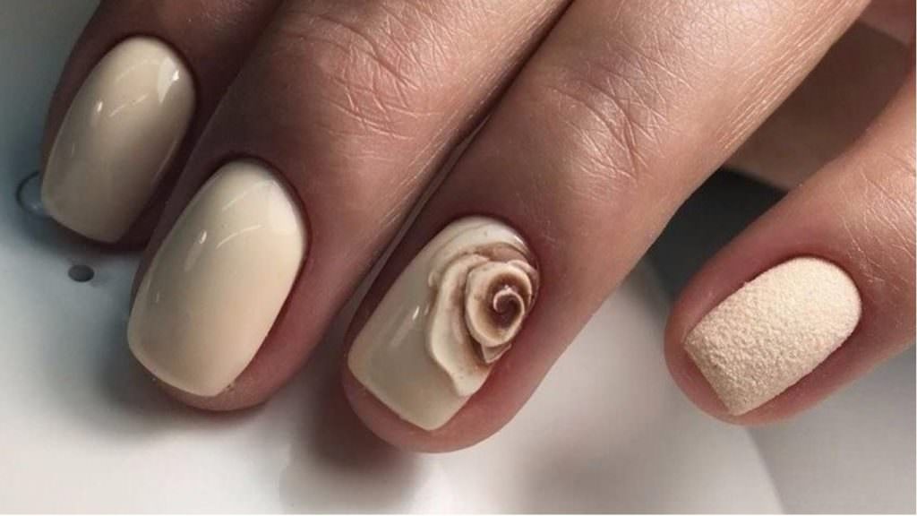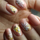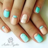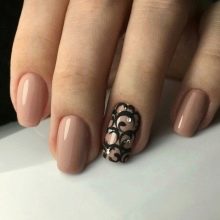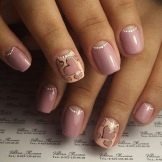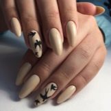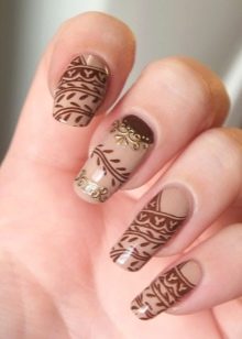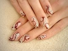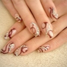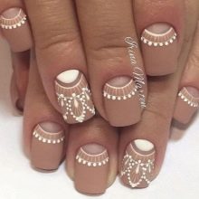 To show its versatility, you can use several tones of lacquer or choose acrylic paints of several tones of beige. Look on the nails such a design will be stylish and new. In addition, if you decorate the picture with a dark outline, white laces or even small rhinestones, the manicure will look fresh and unique.