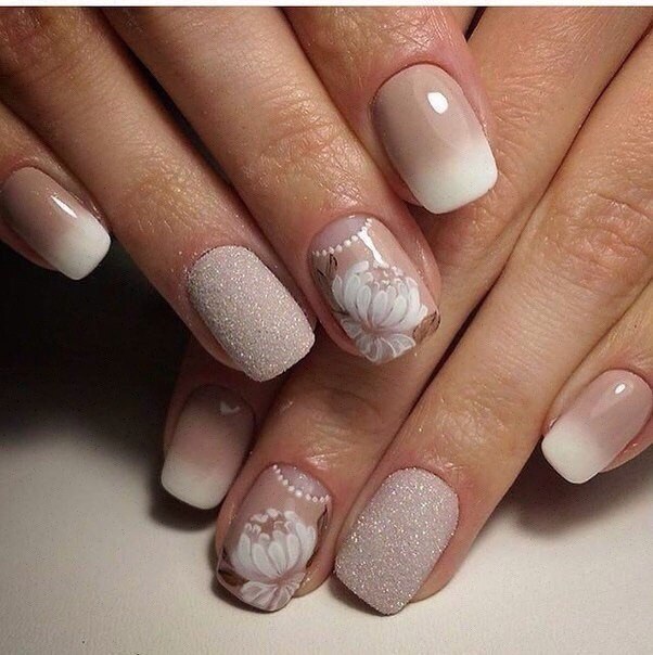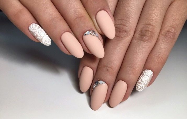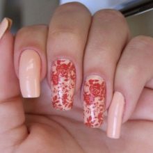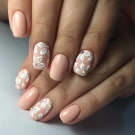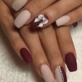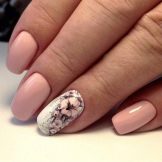 Decorate with drawings nails, made in different techniques. Of course, the most common of them are inverted jacket, jacket and classic. In this case, the image can be located on the entire area of the nail plate or a small part of it.Often the pattern on the accent nail is a link connecting the beige base color with a contrasting tone. This creates the effect of softening the two contrasting shades.