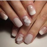 - A manicure with a pattern looks beautiful if one of the nails is made with acrylic powder.